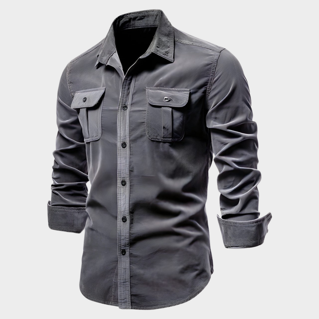 Men’s Utility Shirt – Dual Chest Pockets – Long Sleeves – Slim Fit – Casual Outdoor Look