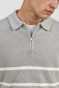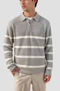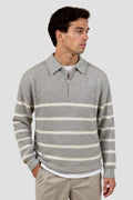 This men’s half zip sweater combines classic stripes with modern comfort. Crafted from a soft wool blend knit, it offers warmth, breathability, and a versatile style that suits both casual and smart occasions. The half-zip design and collared neckline add a refined touch, making it a perfect piece for layering.