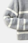 Men’s Half Zip Sweater – Striped Knit Pullover – Casual Wool Blend Jumper – Smart Men’s Clothing