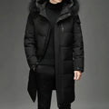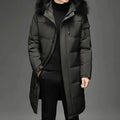 Men’s Long Winter Coat Warm Puffer Jacket Hooded with Faux Fur Collar Windproof & Insulated