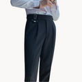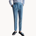 Elevate your formal wardrobe with these men’s pleated trousers, tailored for a sleek and refined silhouette. Featuring sharp front pleats, an elegant tapered leg, and adjustable waist tabs for a perfect fit, these trousers deliver timeless sophistication for dinners, events or upscale evenings. Crafted from a smooth, structured fabric for comfort and crispness all day.