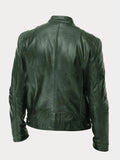 Men's Leather Biker Jacket - Zipper Closure - Stand Collar - Slim Fit - Moto Style Outerwear