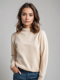 Women's Knitted Turtleneck Top – Soft Texture – 3/4 Sleeve – Minimal Chic Look